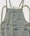 ヴィンテージ感のある加工や、カラーリングがオシャレなデニムサロペット。細めの肩紐や太過ぎないシルエットが大人っぽいポイント。肩紐で着丈の調節が可能です。