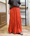 透け感のあるインドコットンボイル素材を使用したロングスカート。5段ティアードデザインで、生地を贅沢に使用したエアリーなアイテム。クリンクル加工が施され、ナチュラルなシワやうねりなどの表面感や、広がり過ぎないシルエット、動いた時の揺れる裾のラインが魅力。裏地にも共布を使用し、吸水・速乾性に優れた暑い季節に嬉しい素材感もポイント。※ウエストゴム仕様・紐付き、サイドポケット付き、裏地付き。