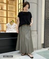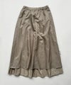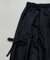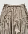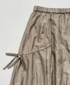 ヴィンテージライクなシワ感とハリ、上品な光沢感が魅力のナイロンタフタ素材のスカート。両サイドに施された紐を絞ってギャザーの調整が可能。シンプルなTシャツ合わせもサマになるアイテム。軽い着用感、ゴム仕様のウエストで履き心地も快適です。※裏地有り。