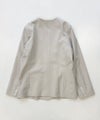 ダブルクロス構造の程良い厚みとハリ感、ストレッチ性を兼ね備えた生地を使用したノーカラージャケット。ボウタイやフリルデザインのブラウスとも相性の良い、スッキリとしたネックライン、シンプルなデザイン。お仕事やセレモニー、日常使いまで幅広く着用可能です。同素材のパンツ(品番:380-8868650)とセットアップでの着用もおすすめです。※裏地付き、ポケット付き。
