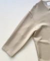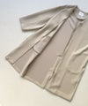 ソフトな肌触りと軽量で伸縮性も兼ね備えた、着心地の良いマシュマロタッチのダンボールニット素材を使用したノーカラーコート。今年はフロントをファスナー仕様に変更。袖後ろで切り替えを入れゆっくりしたアームながらも、もたつきのないシルエットに。バックの深めのスリットがスタイリッシュな印象です。今から春までロングシーズン着用でき、綺麗目にもカジュアルにも着回し可能なアイテムです。※裏地無し、サイドポケット付き。