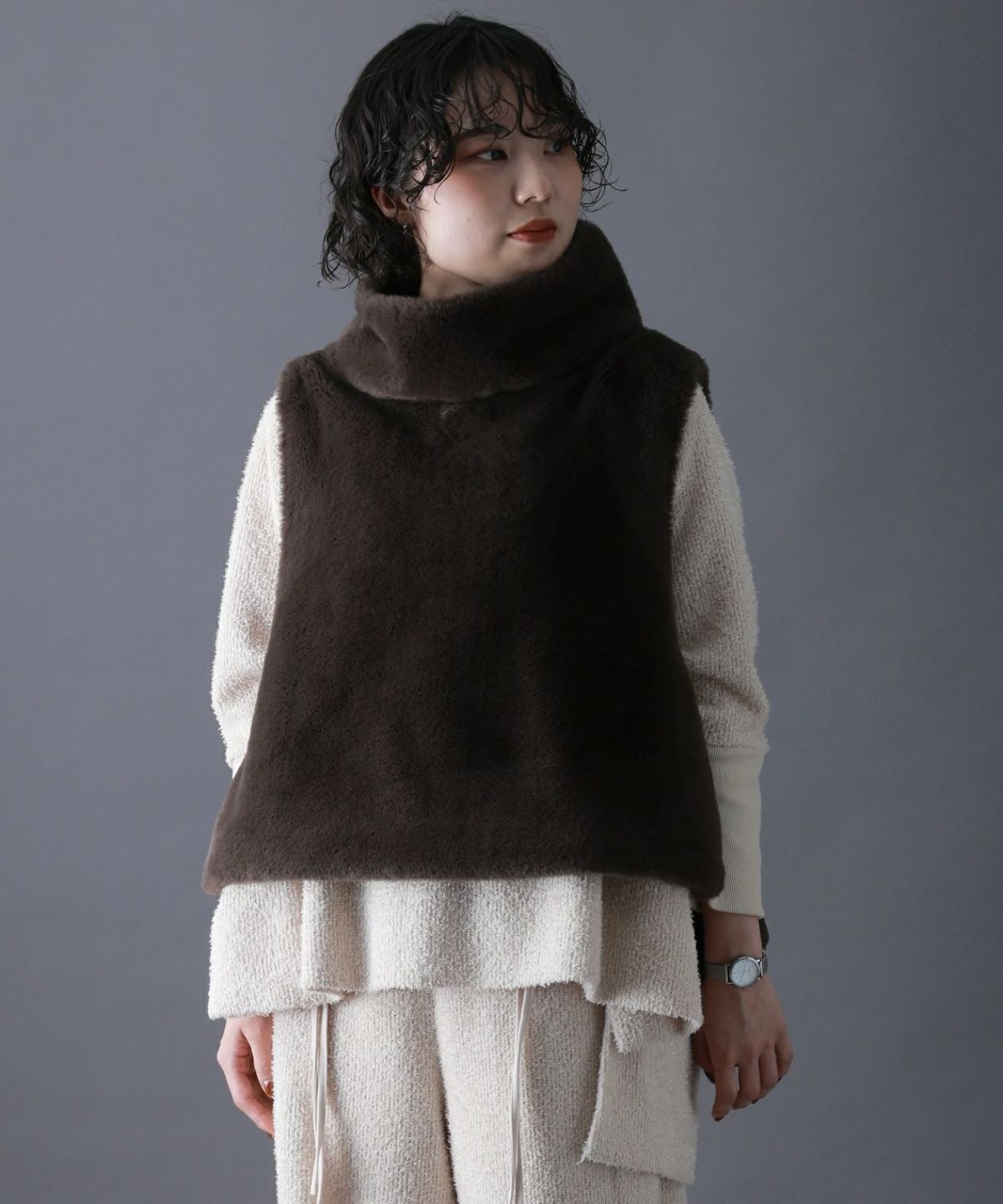 ハイネックファーベスト