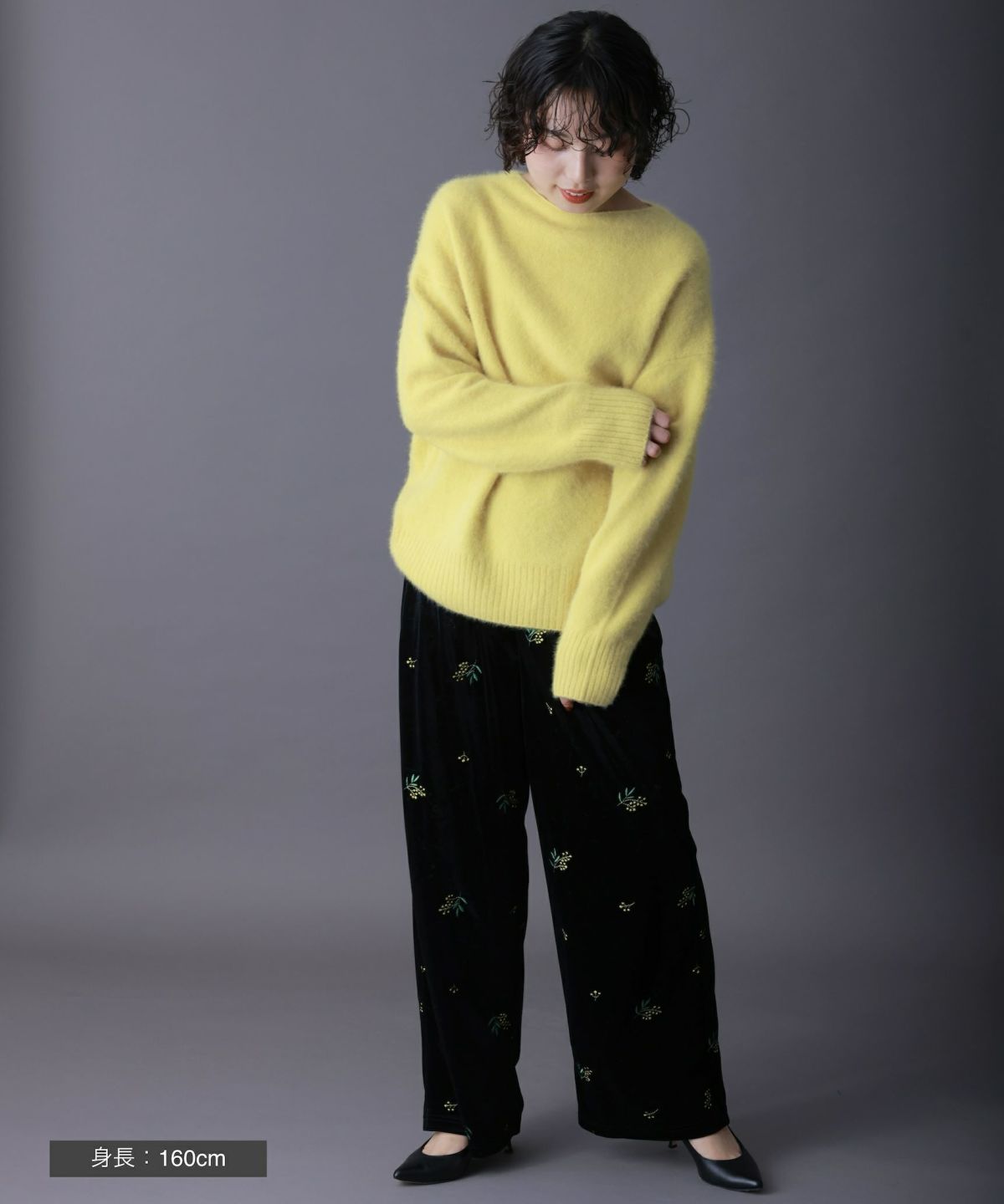 ベロア小花刺繍パンツ