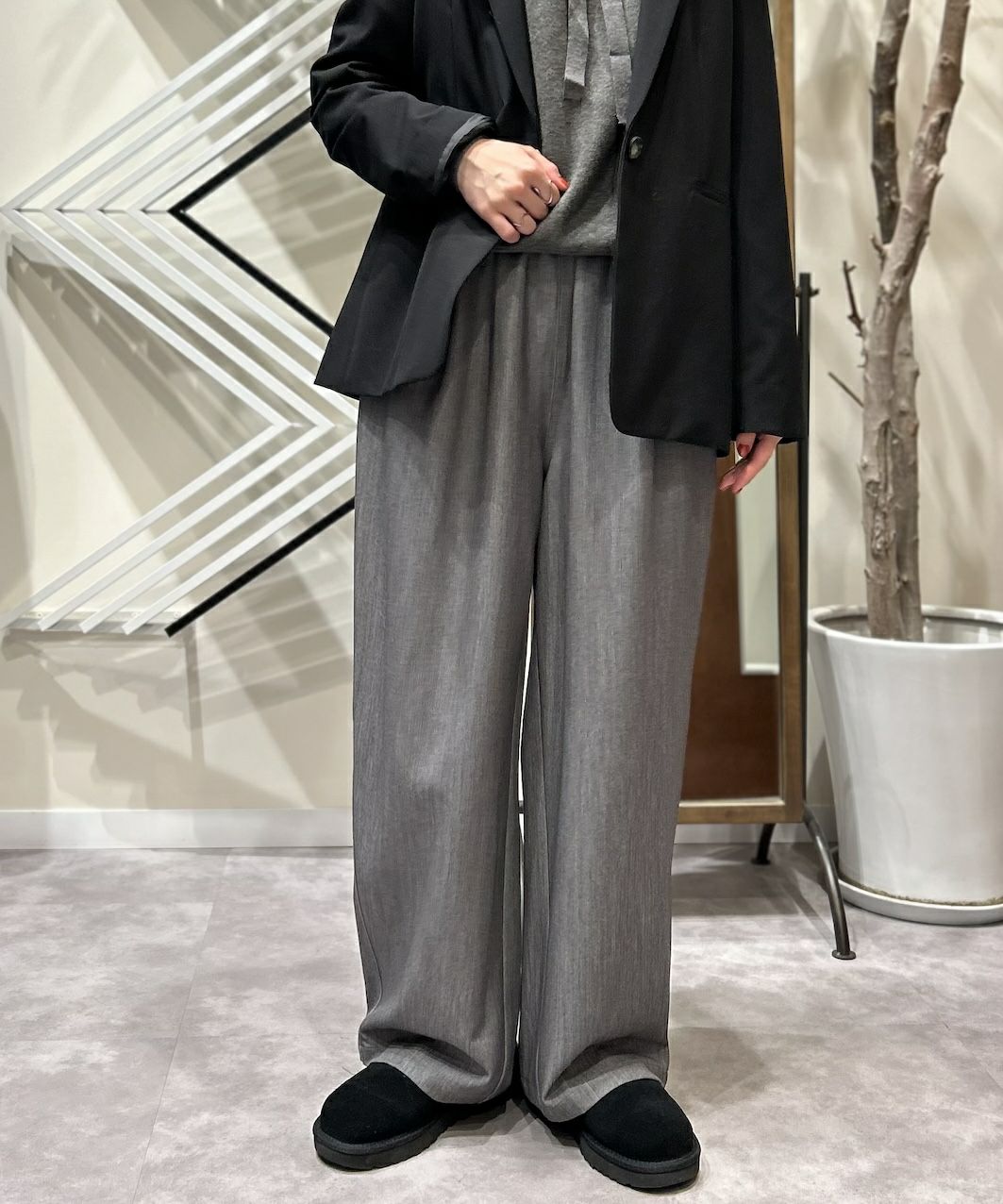 裏起毛タックワイドパンツ