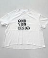 【Good View Design】アメリカのロックTやカレッジTのムードをPARISにインスピレーションを受け、パリジェンヌの感性へと落とし込んだカットソーブランド。大人っぽいニュアンスカラーのボディーに、自然に馴染むブランドロゴが前後にプリントされています。程良いゆとりがありつつ、計算された長過ぎない袖丈や前後差のある着丈が絶妙なバランス。さらに表面にはパウダー加工が施され、綿100%でヴィンテージ感もありつつ、カジュアル過ぎない柔らかな風合で大人の女性が安心して着用できるTシャツに仕上がっています。