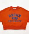 裏毛を使用したカレッジロゴプルオーバー。ショート丈で旬なスッキリとしたサイジング。ボリュームのあるパンツやスカートと好相性です。やや薄手の裏毛を使用し、春まで着用できるアイテムです。