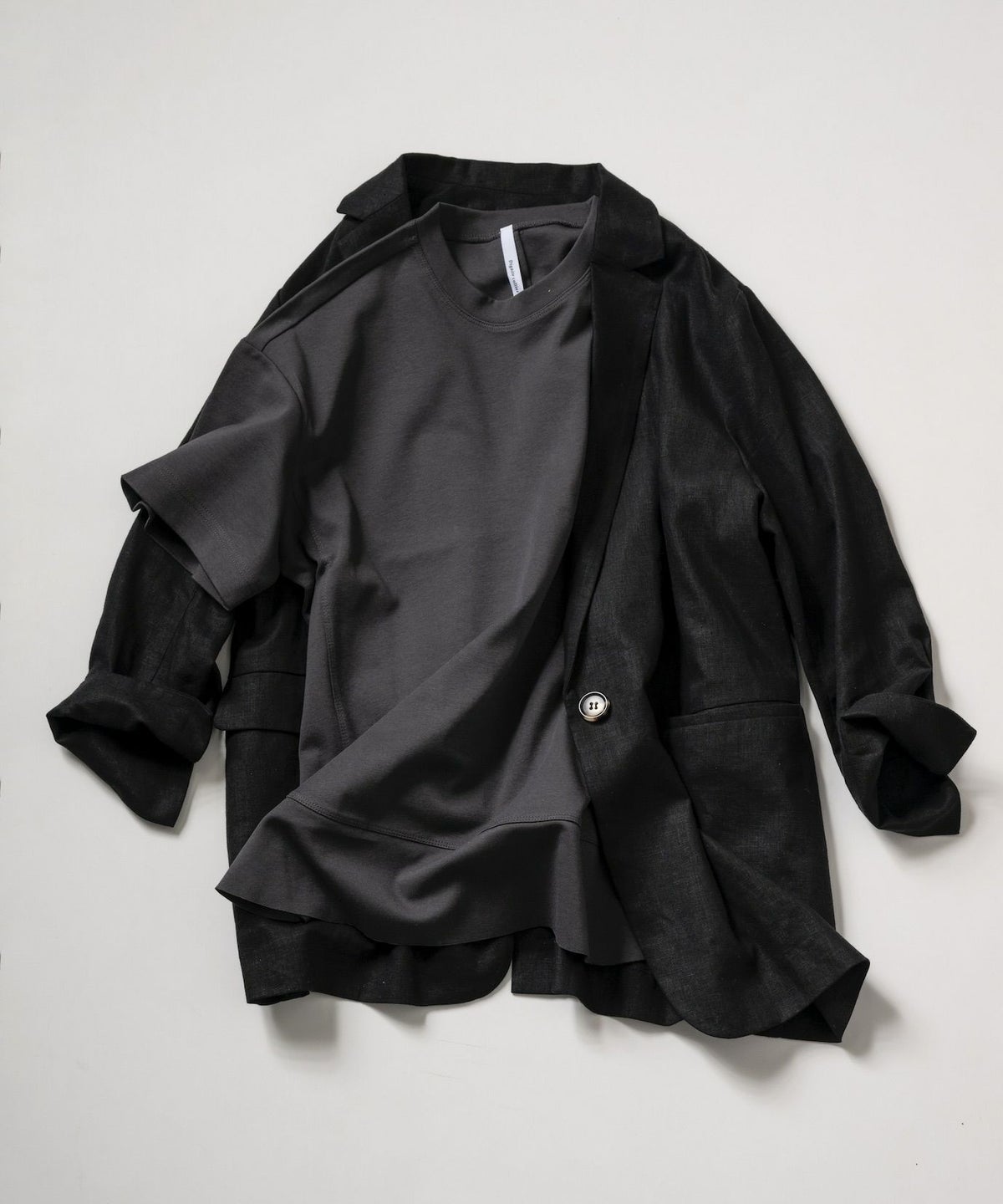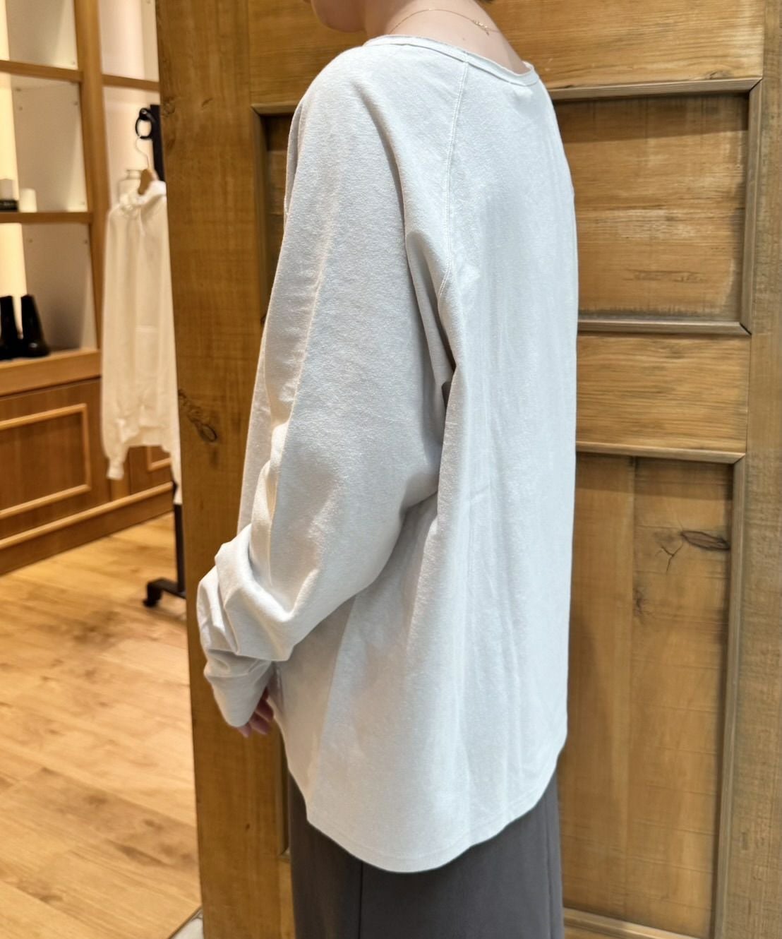 裾ラウンド切り替え長袖Tee