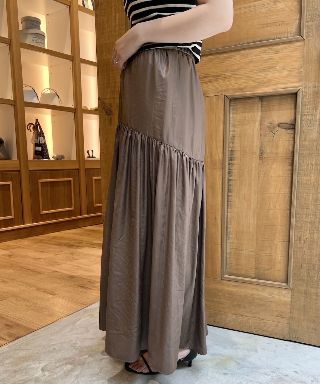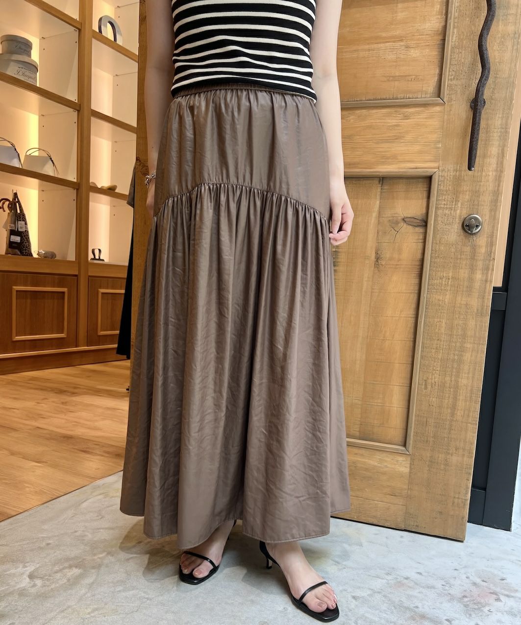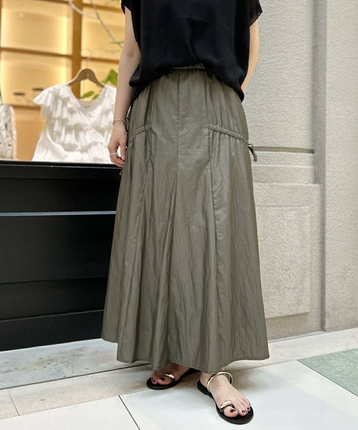 【50%off】ワッシャータフタギャザーコードスカート