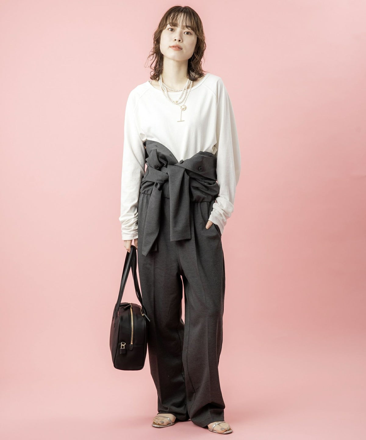 杢調タンブラーイージーワイドパンツ
