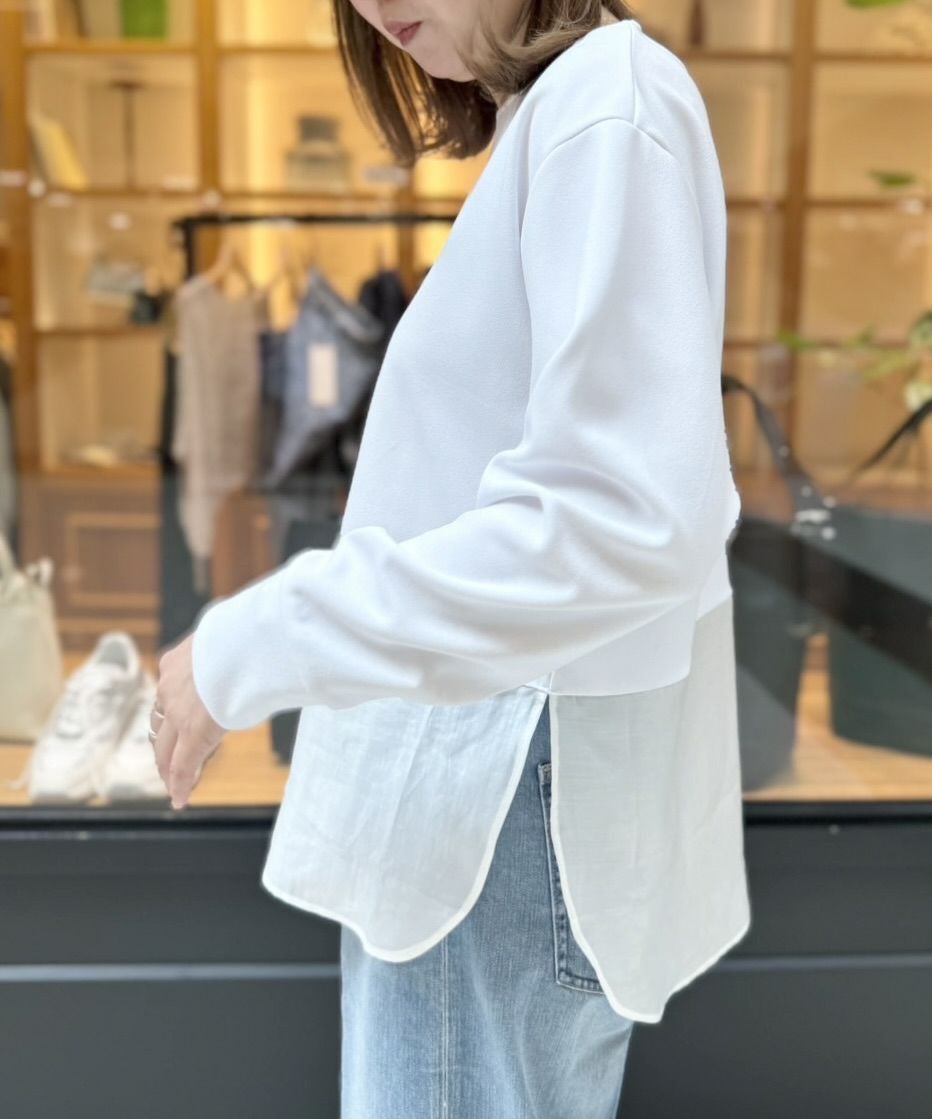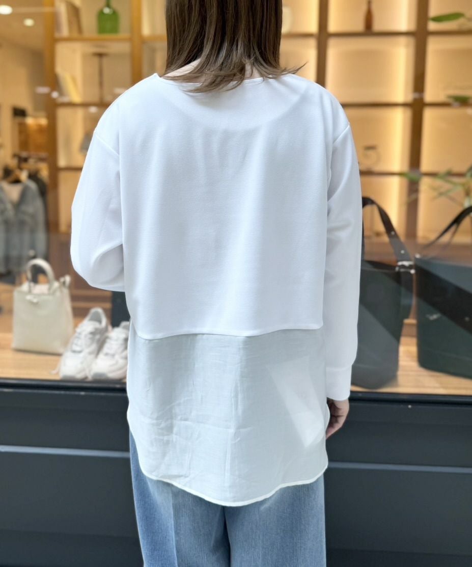 シアー切替長袖プルオーバー